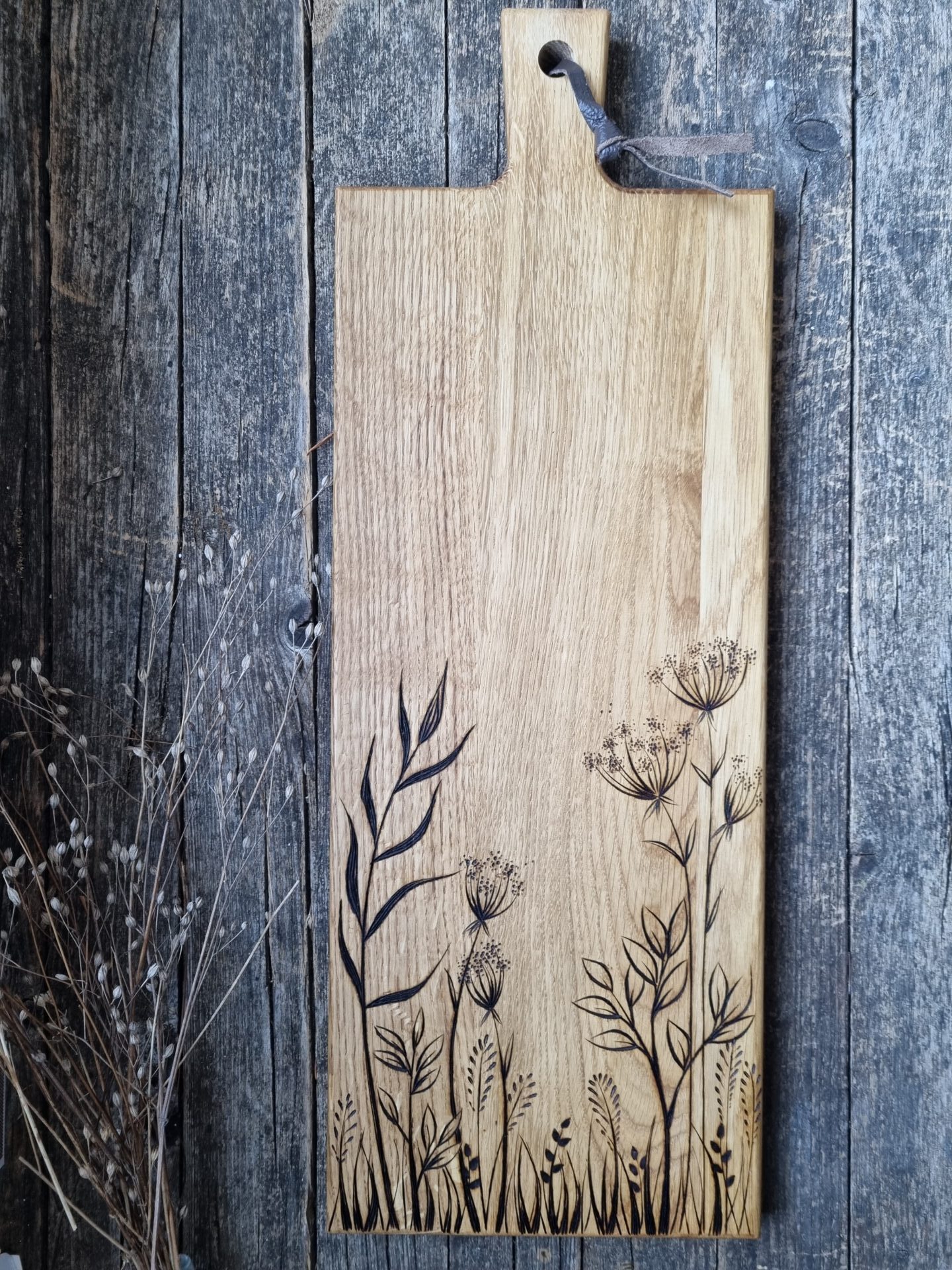 Ein langes und robustes Küchenbrett aus Eiche ist ein wunderschönes Accessoire für deine Küche. Mit viel Liebe und Sorgfalt wurde es in meiner kleinen Werkstatt handgebrannt und ist somit ein einzigartiges Unikat. Die Eiche, aus der das Brett gefertigt wurde, ist nicht nur langlebig und robust, sondern auch antibakteriell und somit hygienisch in der Küche. Es verleiht deiner Küche eine natürliche Note und bringt Wärme und Gemütlichkeit in jeden Raum.