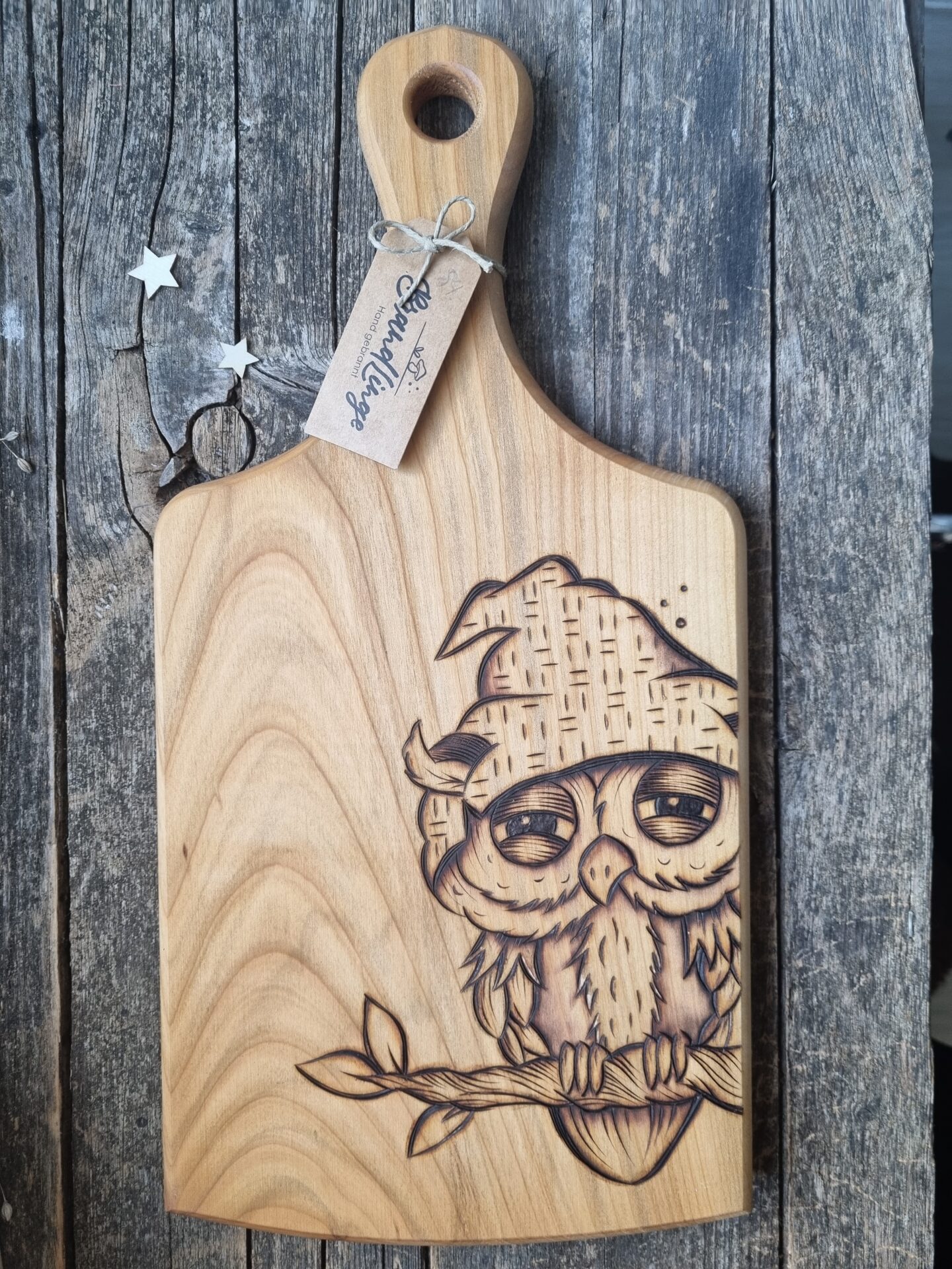 Ein nachhaltiges Küchenbrett aus Kirschholz ist ein wunderschönes Accessoire für deine Küche. Mit viel Liebe und Sorgfalt wurde es in meiner kleinen Werkstatt handgebrannt und ist somit ein einzigartiges Unikat. Das Loch in der Mitte des Bretts macht es nicht nur besonders praktisch, sondern gibt ihm auch einen besonderen Charme und ermöglicht das einfache Aufhängen an der Wand.