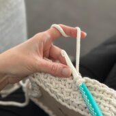 Jede Masche ist straff gearbeitet, sodass der Korb zu Weihnachten als stilvoller Aufsteller glänzen kann – vielleicht mit Christbaumkugeln, Nüssen oder Tannenzapfen? Und über das Jahr hinweg bietet er Platz für all die kleinen Dinge des Alltags: Schlüssel, Briefe oder Lieblingssüßigkeiten.